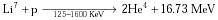 (A competing neutron-emitting reaction (Li7 + p ---> Be7 + n) occurs only at incident proton energies >1.6 MeV, and radiative absorption of the proton, producing a radiated g-ray, occurs as a sharp resonance absorption at a proton bombardment energy of 440 KeV.2463) A ~109 volt/m linear accelerator ~125 microns in length can produce 125 KeV protons, and from Eqn. 6.25 a platinum shield ~18 microns thick absorbs ~100% of the 8.36 MeV a-particles produced, thermalizing the energy.