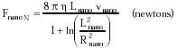 for Lnano >> Rnano.363 (If the perpendicular force is applied at a distance c from one end of the cylinder, then the Lnano2 term in Eqn. 9.75 is replaced by 4 c (Lnano - c) when c >> Rnano.) Eqn. 9.75 does not hold for a perpendicular force applied near the ends of the cylinder. Also, a constant Fnano actually produces a slowly varying velocity field along the cylinder length; for a midpoint-applied force, vnano is at maximum at the midpoint, but the percentage variation over most of the cylinder is not large.363 Experiments show that needle-shaped bodies fall in viscous media about half as fast sideways as they do end-on;1378 that is, the force on a long cylinder translating parallel to its axis is FnanoP ~ (1/2) FnanoN. The power requirement is then calculated as in Eqn. 9.74.
